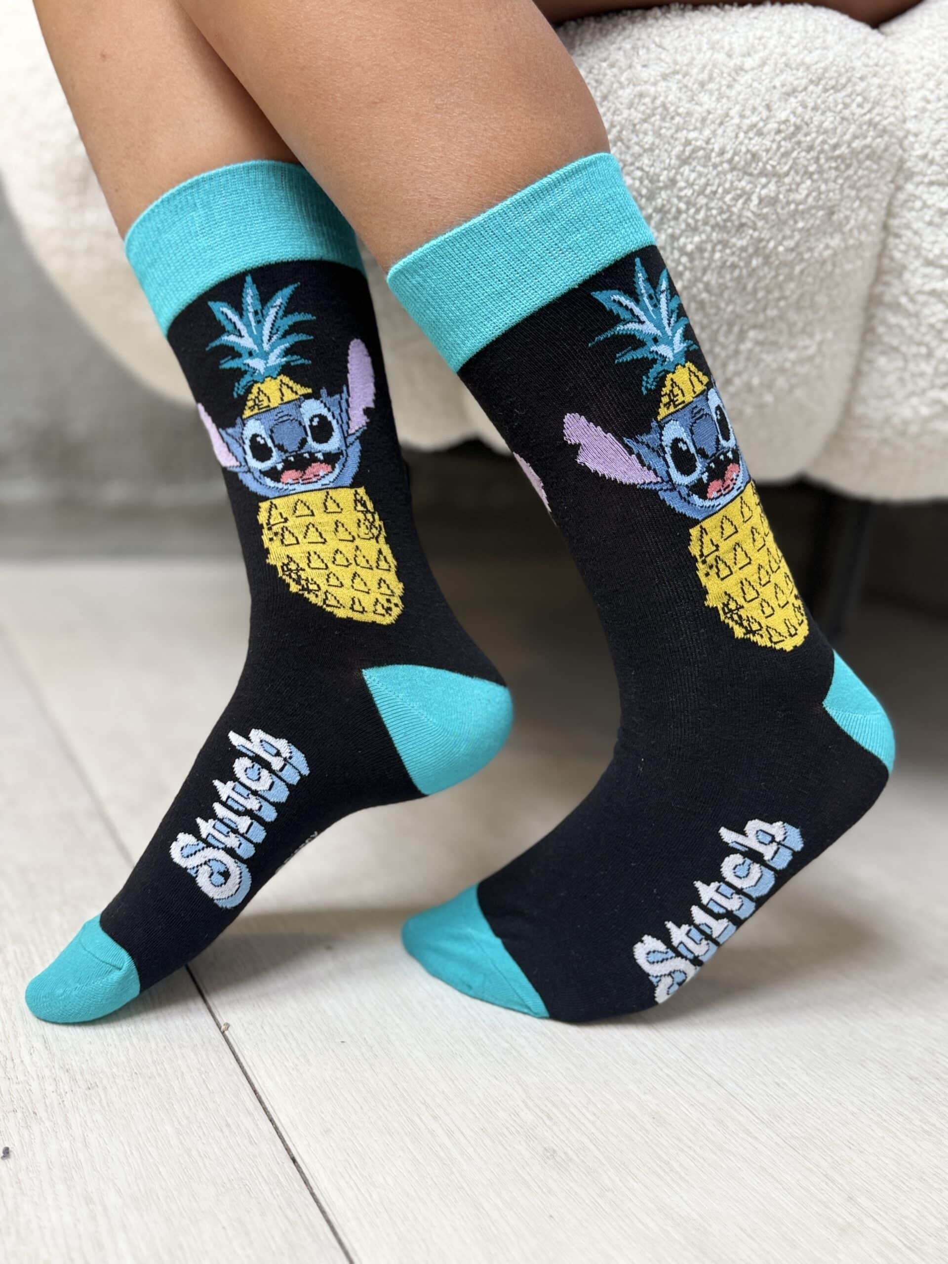 צבע: רקע שחור, סטיץ מחזיק אננס ענק.