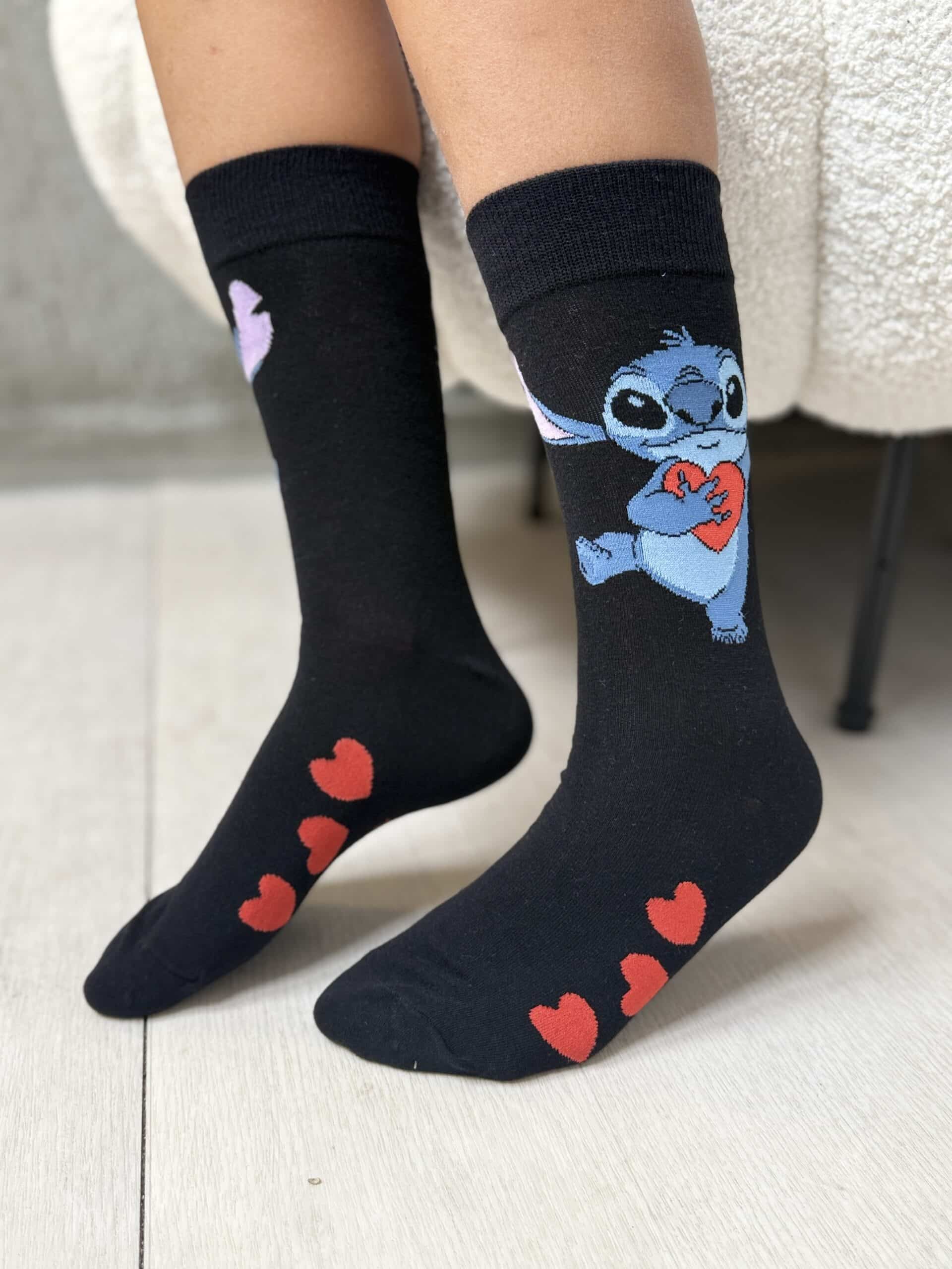 צבע: רקע שחור, סטיץ מחבק לב אדום.